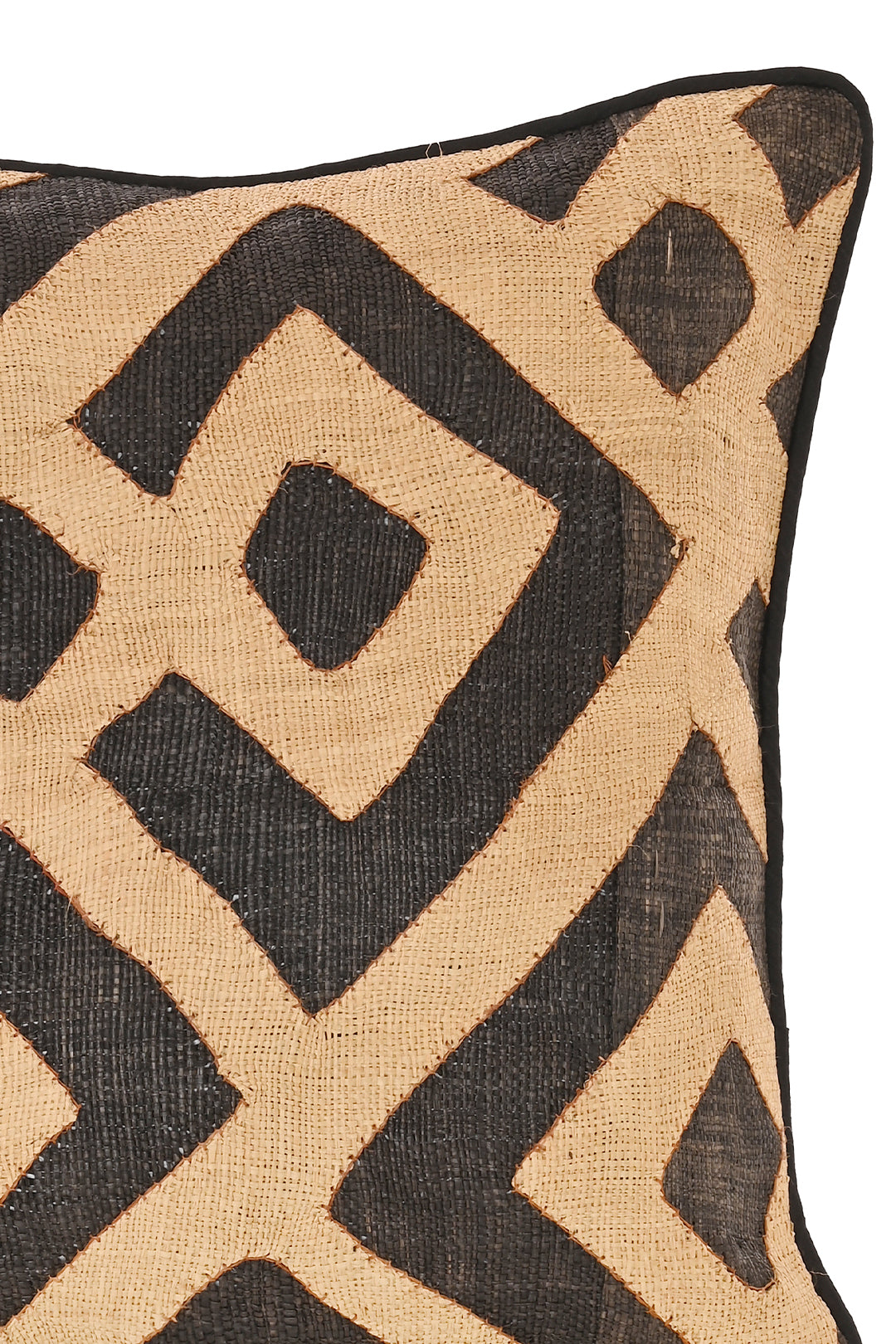 Congo raffia, a traditional textile of the Kuba people of the Democratic Republic of Congo, is woven from the natural fiber of the raffia palm. The fabric has a rustic texture that is highlighted by the hand-appliqued, traditional designs. The seamstresses at Marvelous Batik in Tanzania create beautiful decorative pillows from this uniquely African textile. Each pillow is crafted to feature the bold, hand-appliqued geometric designs of the Congo raffia.