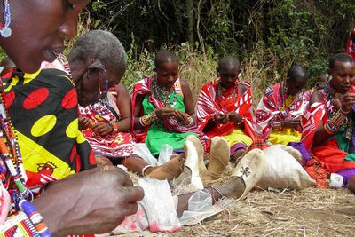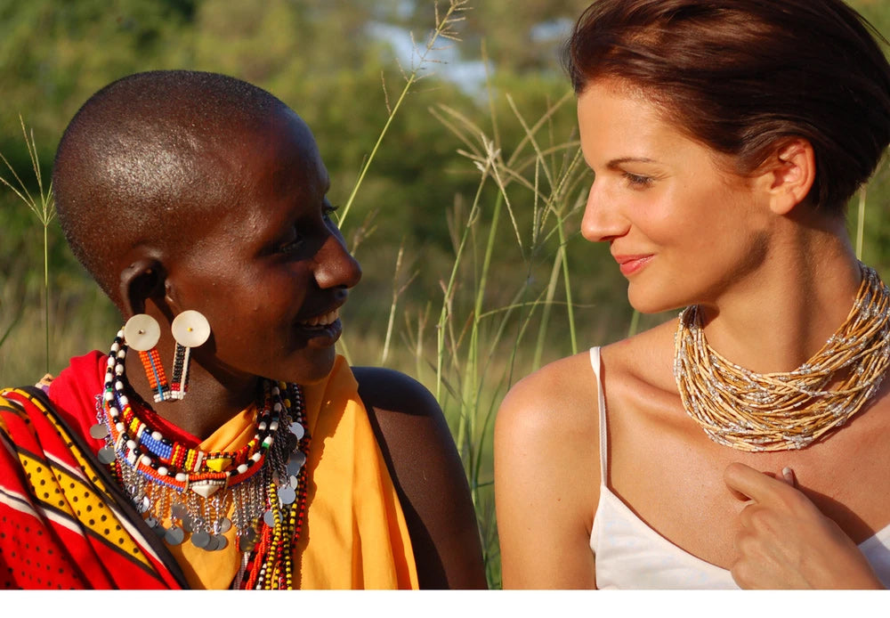Philip and Katy Leakey, founders of The Leakey Collection who live among the Maasai in rural East Africa, wanted to provide their neighbors with work opportunities. They came up with an imaginative idea to utilize the excellent beading abilities of the Maasai women by using a readily available, sustainable resource—GRASS—as the primary element.