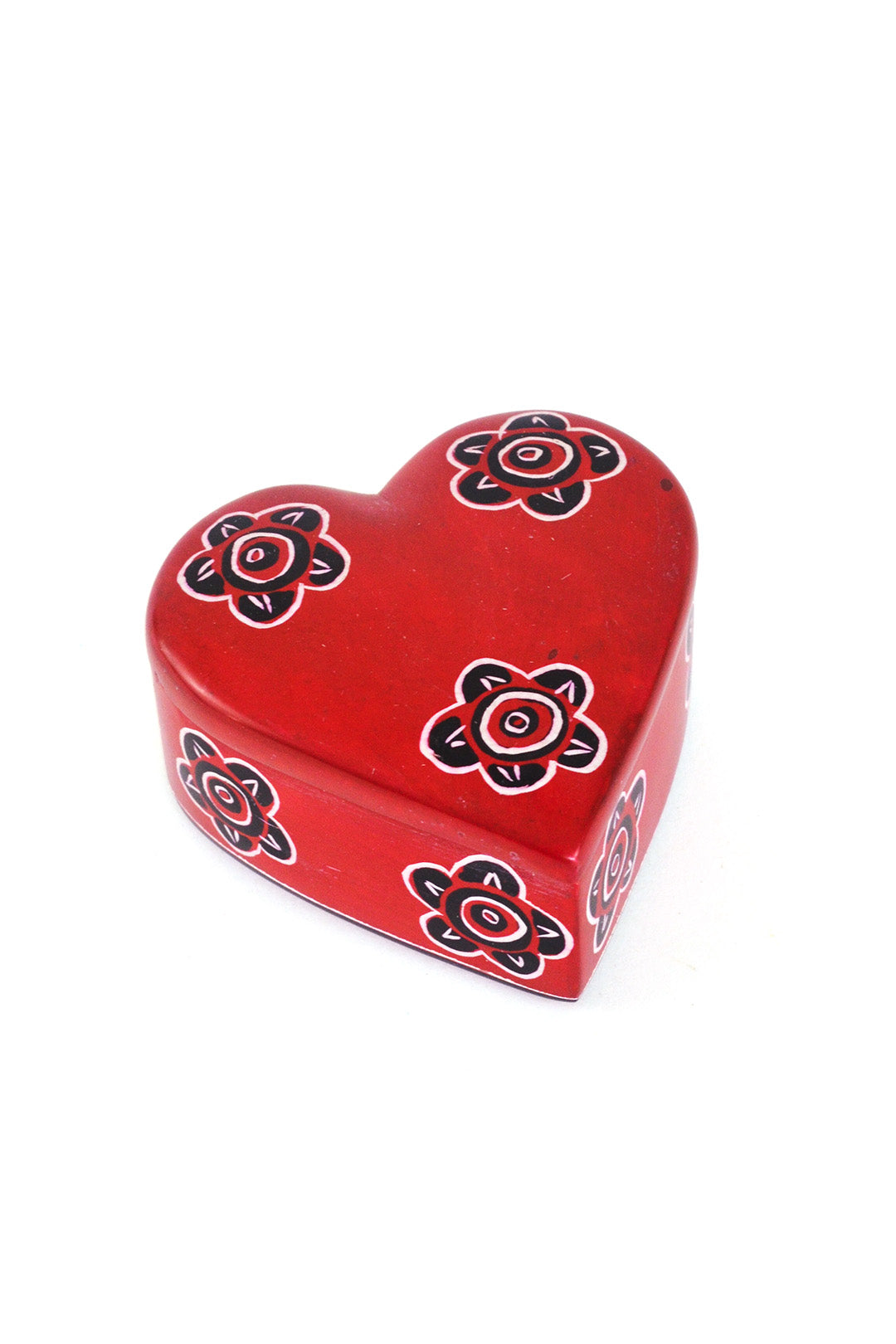 Handcrafted by Kenyan artisans from soft soapstone, this heart-shaped keepsake box has a hand-dyed finish.