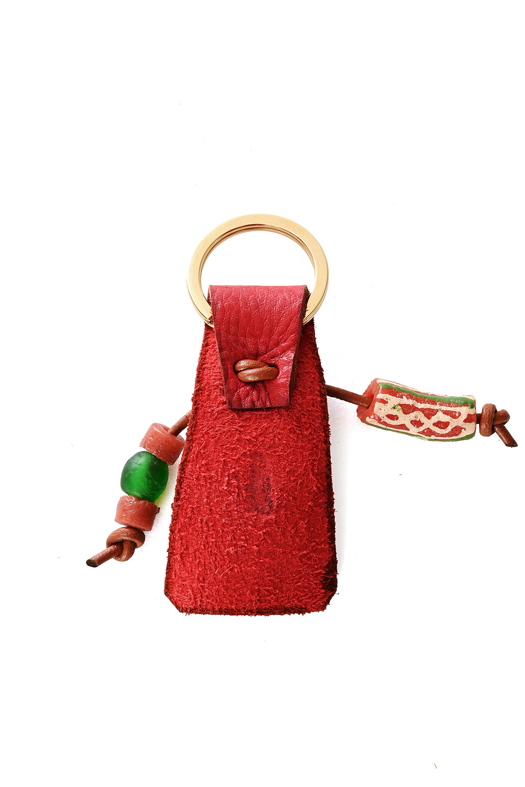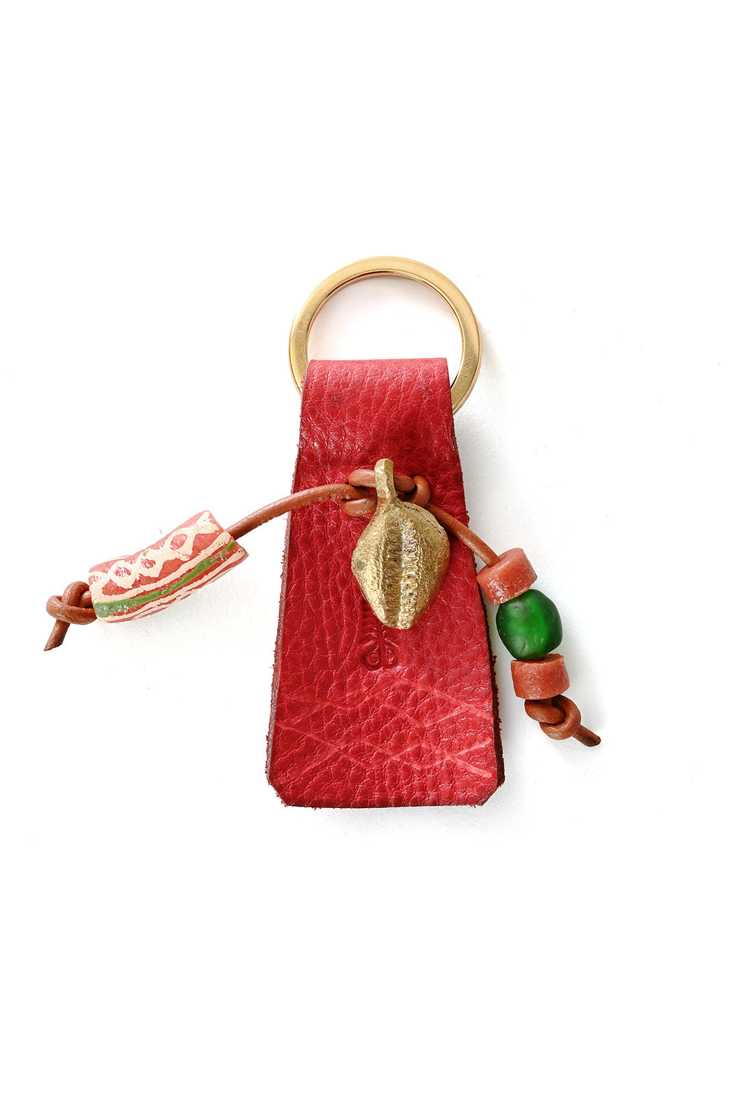 Brass Cowry Key Ring with Red Leather & Beads