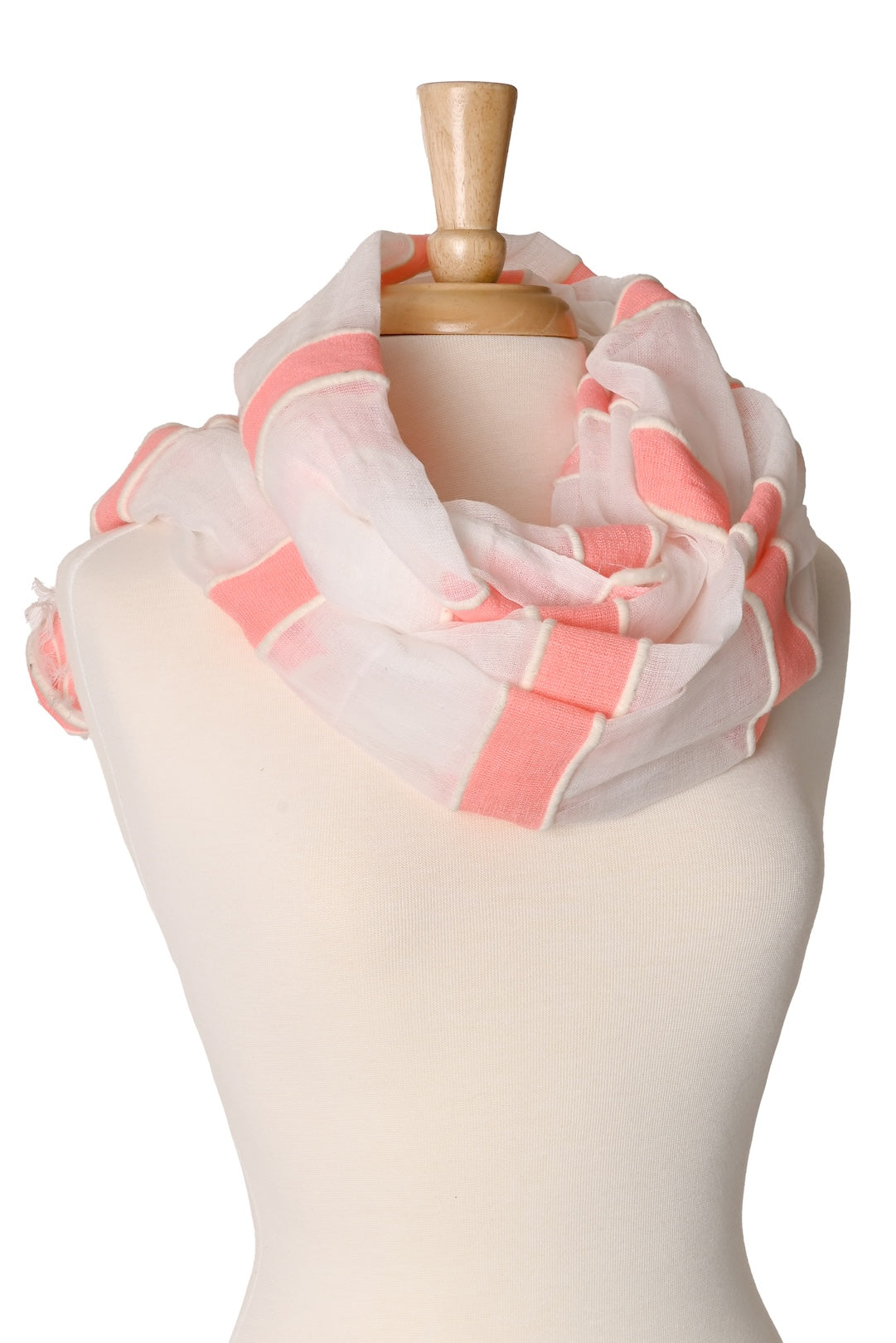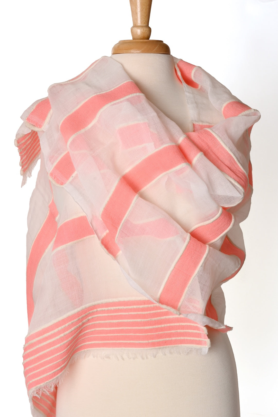 Coral Rows Light Cotton Shawl from Ethiopia - One of a Kind
