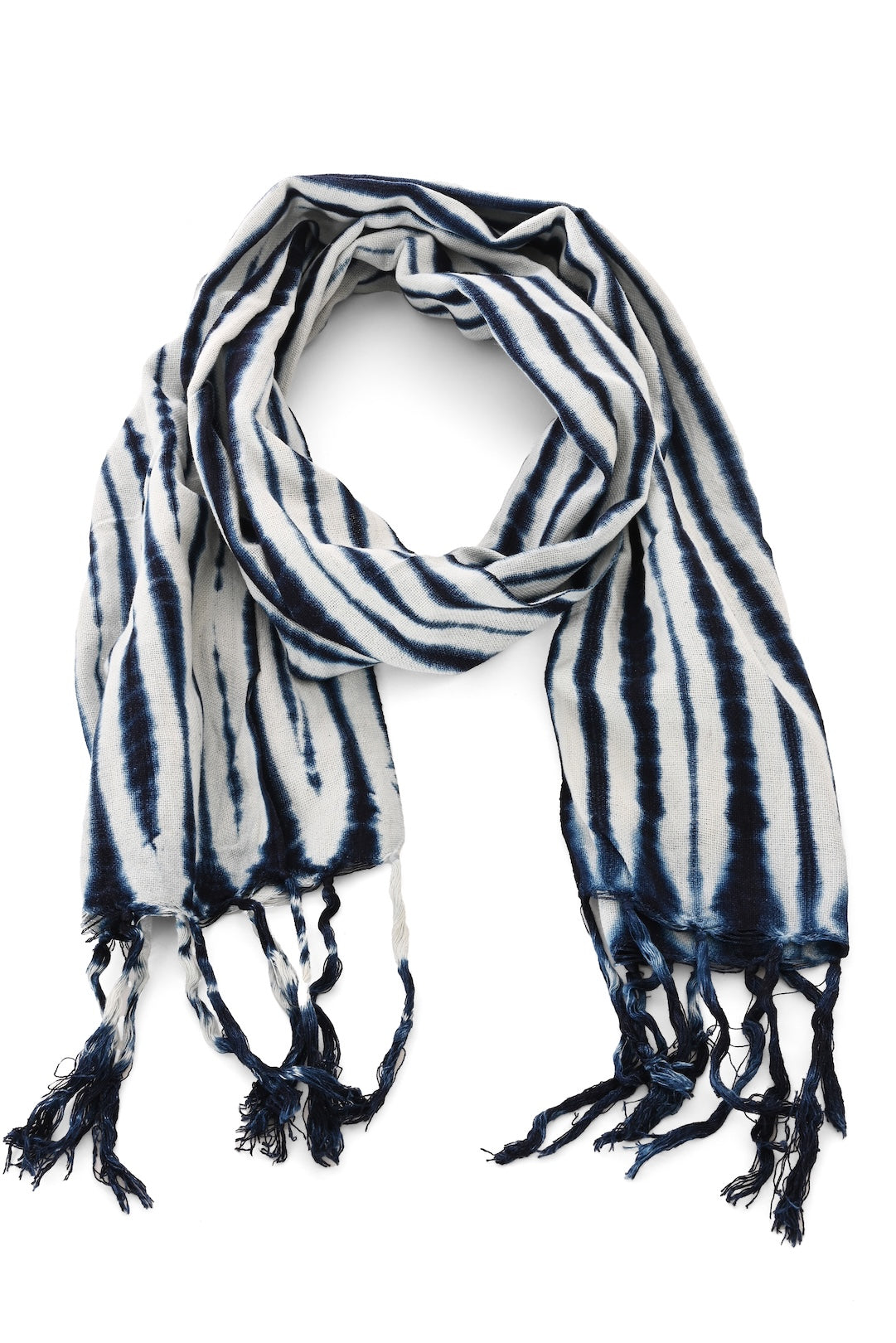 Handwoven from organic cotton and hand-dyed with natural indigo, the Moonlit Tide Scarf carries the spirit of Mali’s rich textile tradition. Its deep tie-dye patterns ripple across deep indigo and the natural cotton base, evoking the play of moonlight over water.