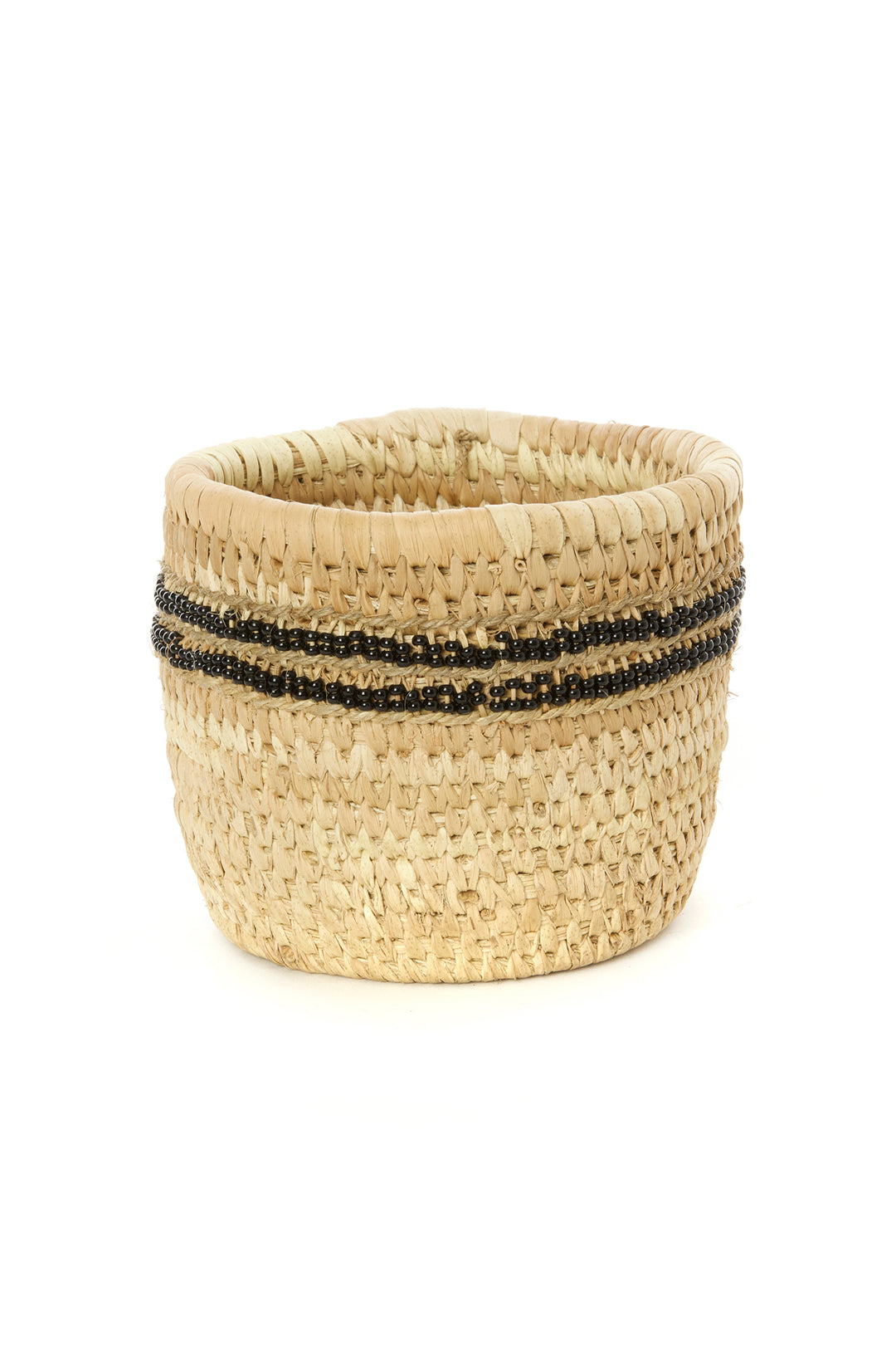 Nomadic baskets are sold in three useful nesting sizes and are adorned with black beads. Because these baskets are handcrafted, size and shape may vary.