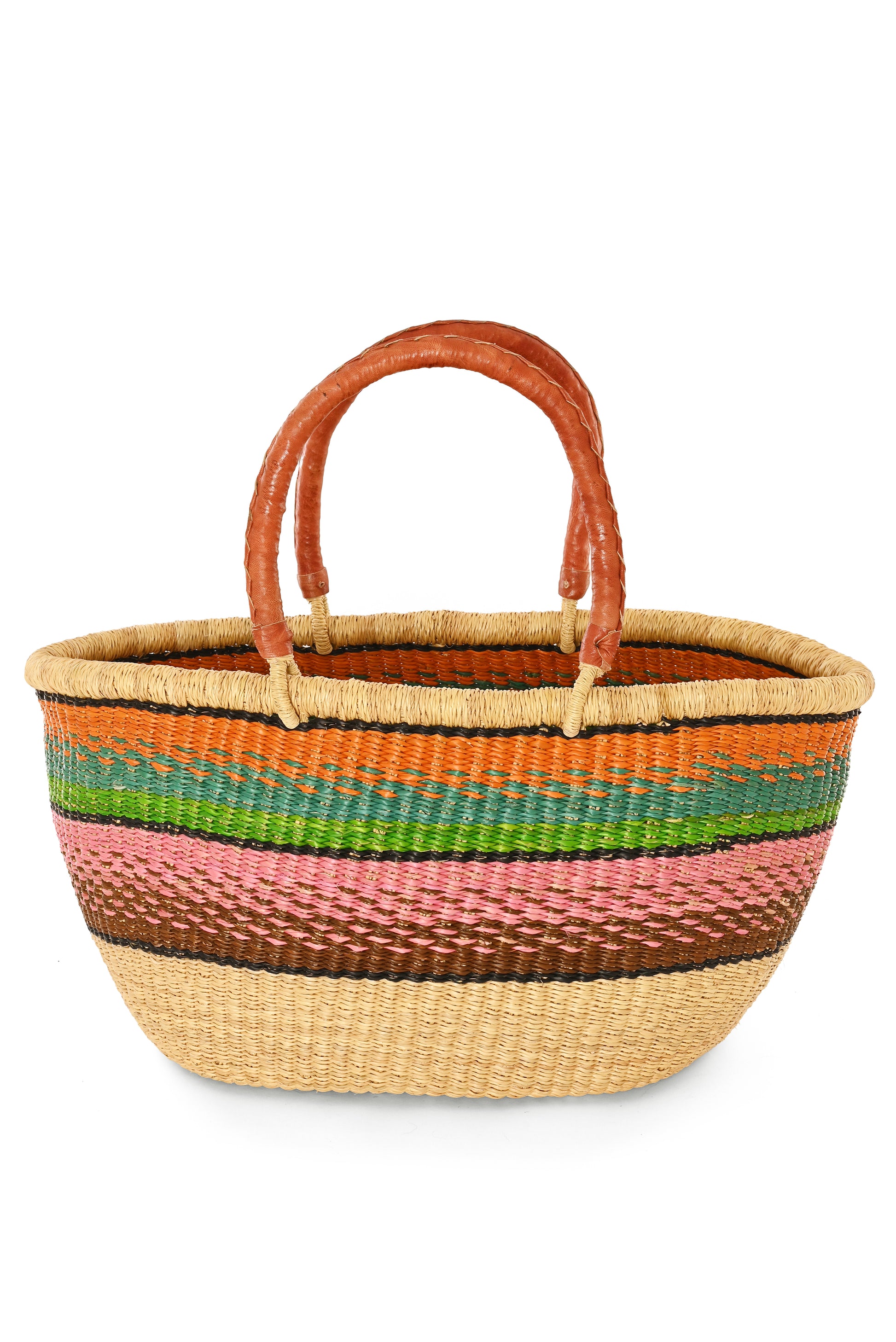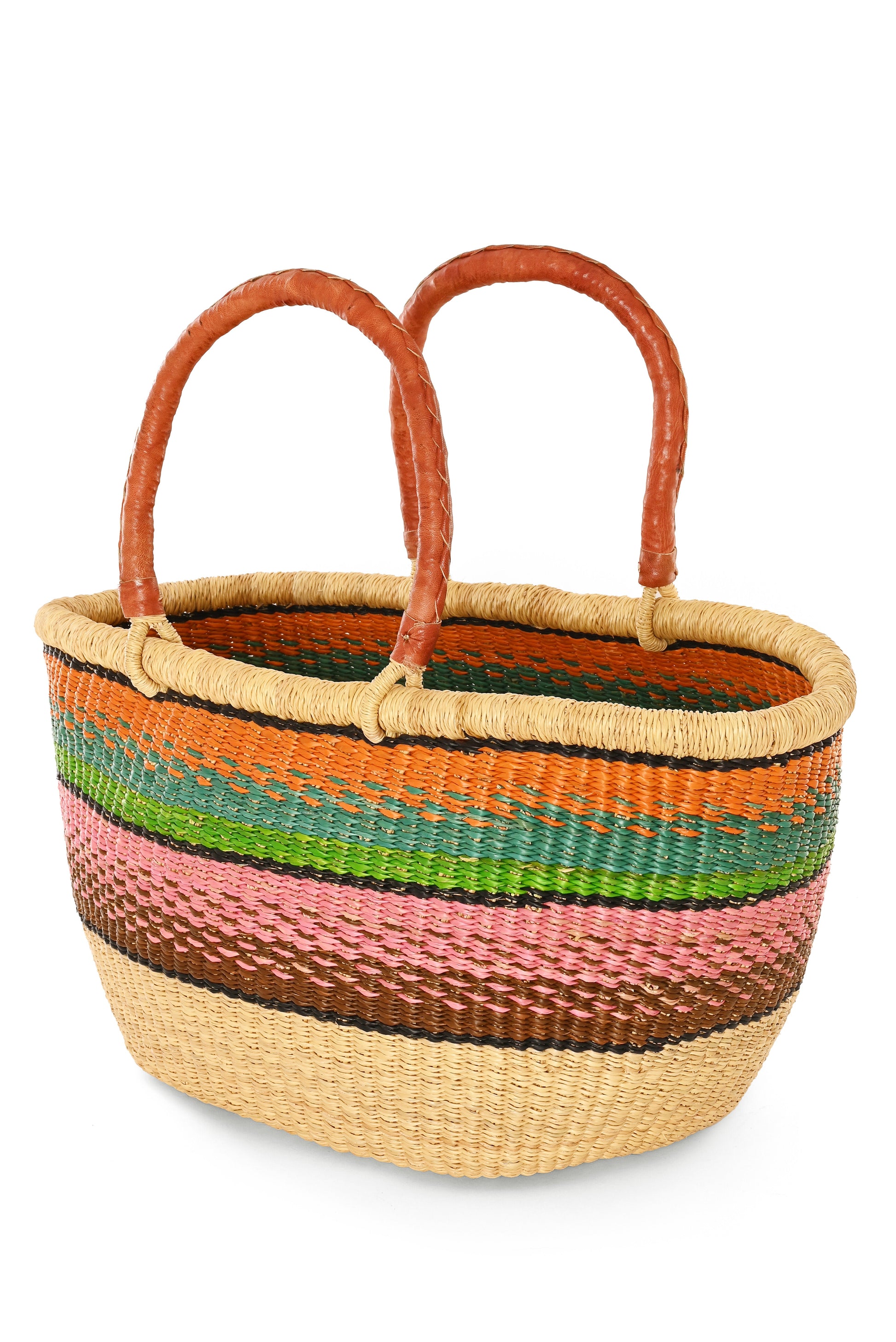 Artisans in the Bolgatanga region of Ghana weave these beautiful oval picnic baskets from thick, tough elephant grass in assorted designs. A popular choice among green shoppers, errand runners and picnic planners worldwide, Bolga baskets stand up to use and abuse and remain functional and beautiful for years.