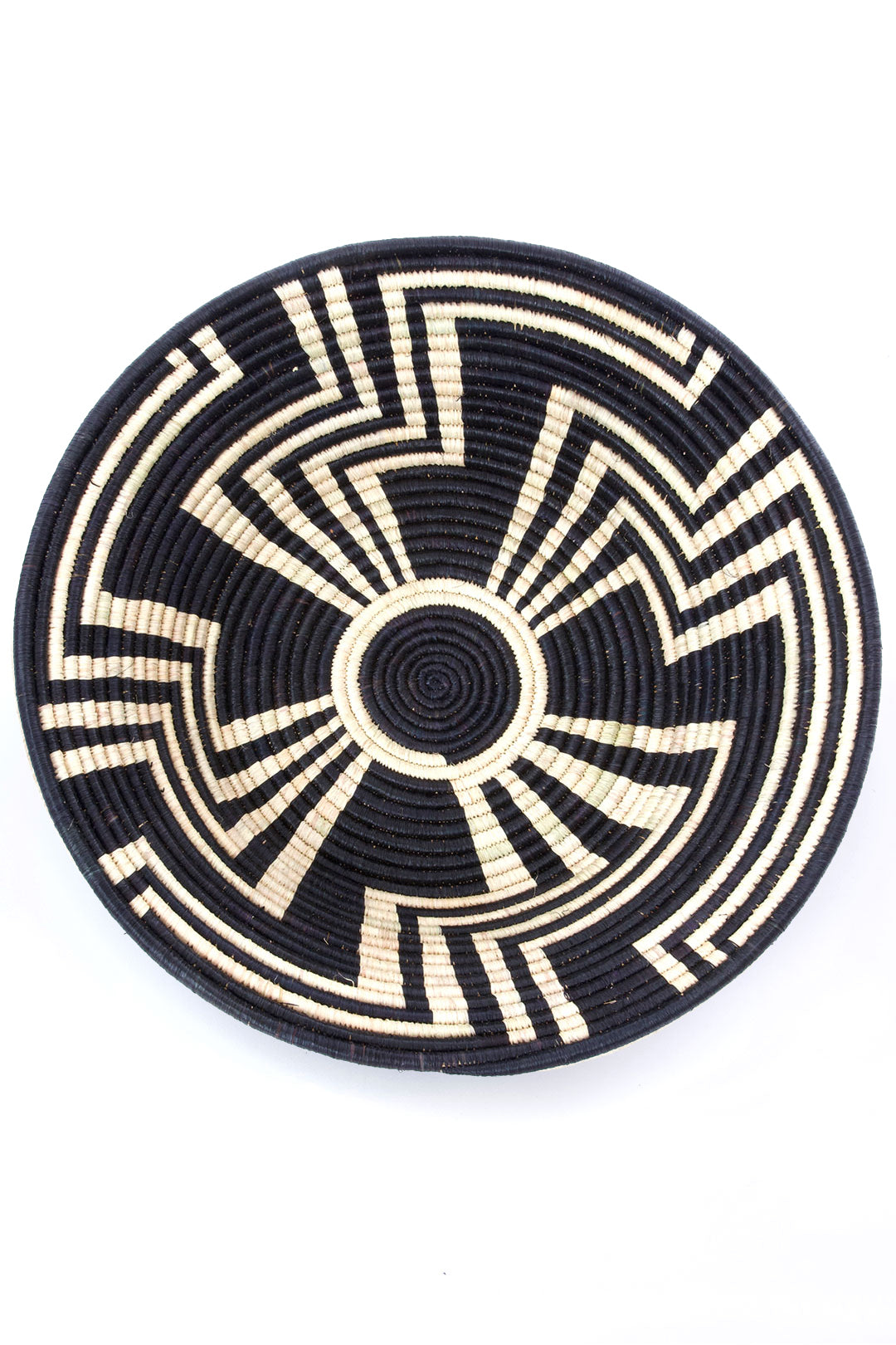 Whether used for harvesting, as a tabletop storage basket or as a wall adornment, this handcrafted piece of art represents Uganda's "moon mountains" beautifully. Featuring a striking lightning bolt pattern, this basket is a gorgeous addition to any space.