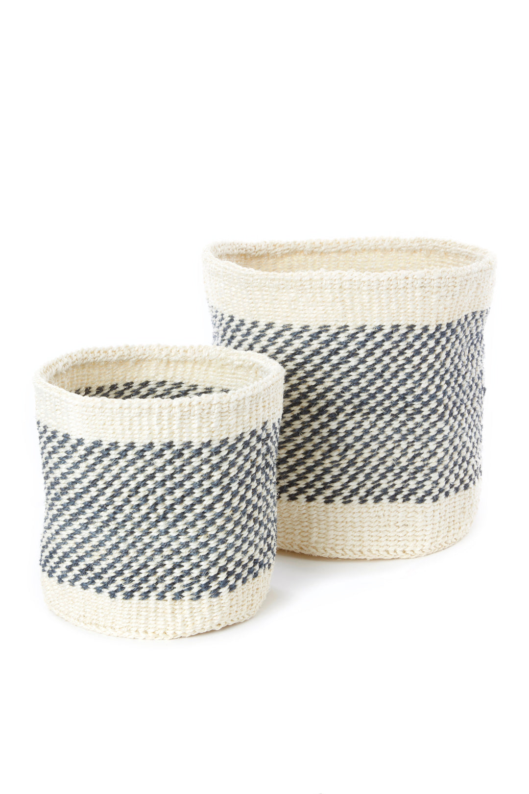 This versatile set of gray and natural nesting baskets is handwoven by talented rural Kenyan women using strands of natural and hand-dyed sisal. The baskets are beloved for their ability to be re-shaped, as well as their durability and all-natural materials. We love sisal baskets for storage and for dressing up a potted plant!