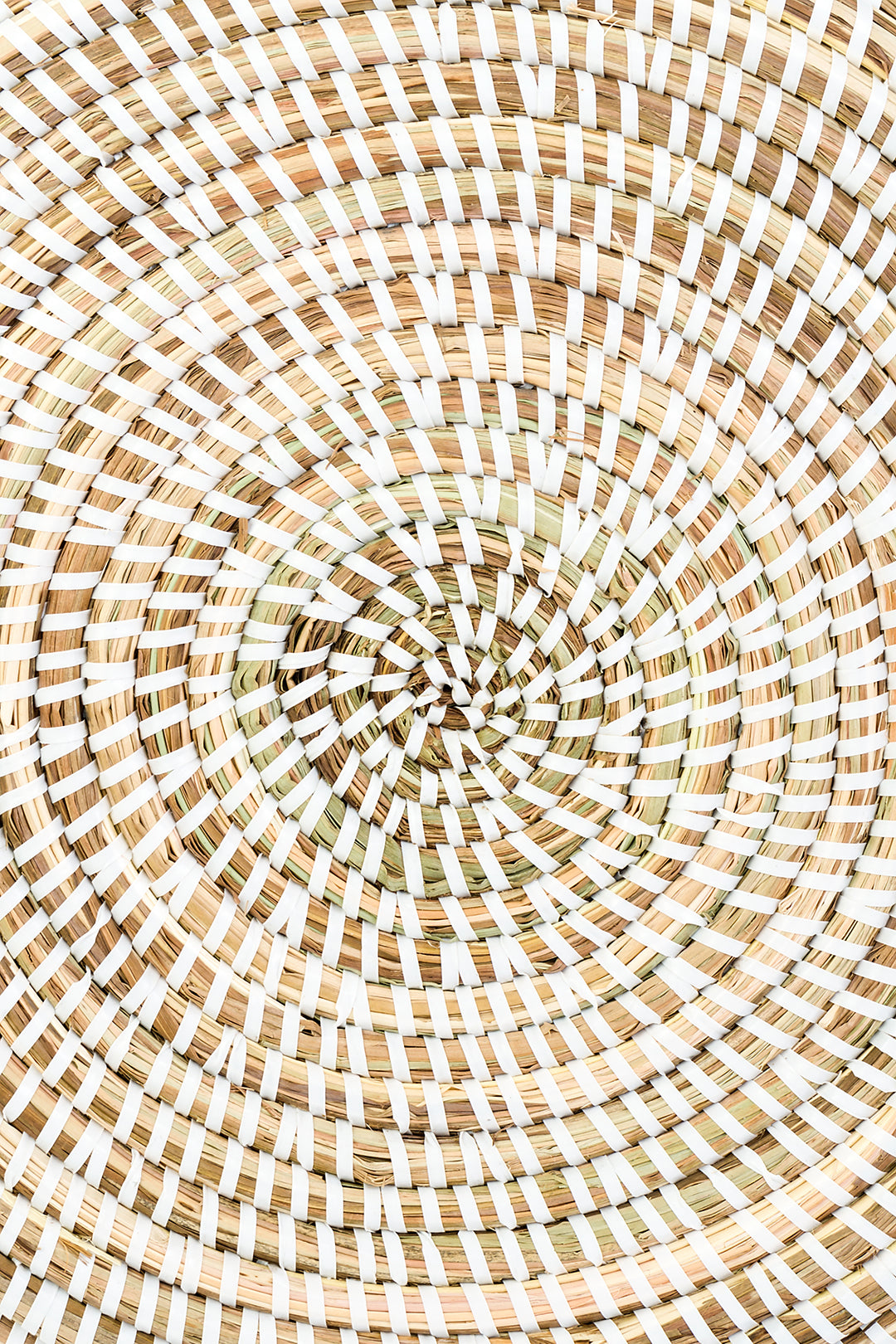 Since 2008, Swahili African Modern has worked with a group of talented Wolof weavers in remote Senegal to design hampers and baskets woven from the salvaged plastic strips and cattail stalks. First introduced by the Peace Corps, our partnership with more than 120 Wolof women shows that cooperative, home-based craft export is an excellent way for rural women to earn fair trade incomes that build healthy communities.
