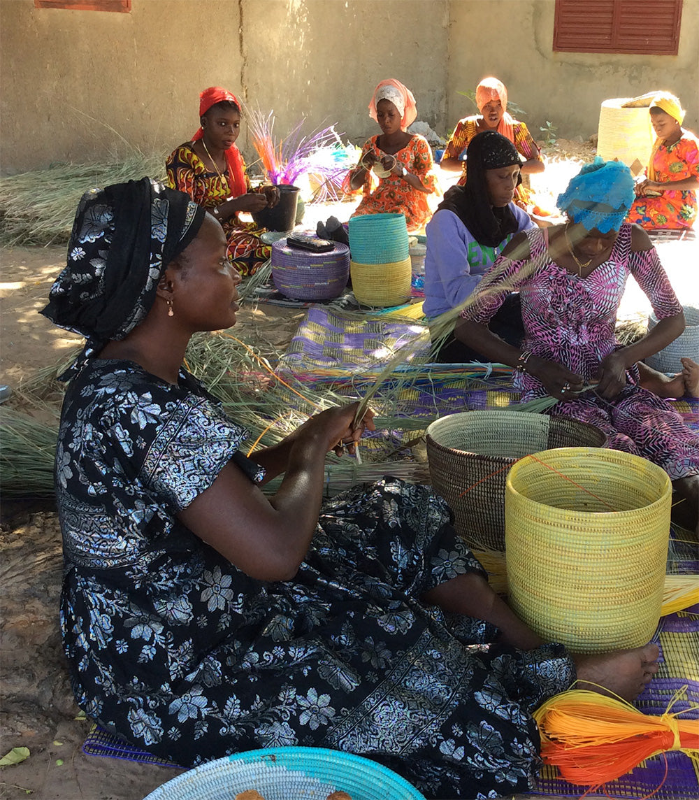 Among the Wolof, basket weaving is traditionally a women’s craft. Often the men from families in rural Senegalese villages work in major cities or abroad, and send money back to their families. The women supplement that income by weaving baskets. Often their children are nearby as they weave, Wolof girls beginning to learn the skill from their mothers and aunts at a young age. Wolof women take pride in their craftsmanship and ability to help provide for their families using this traditional skill.
